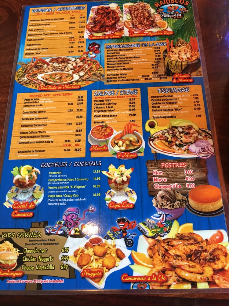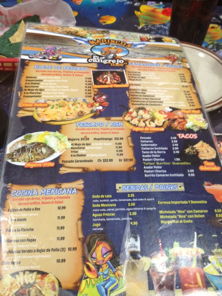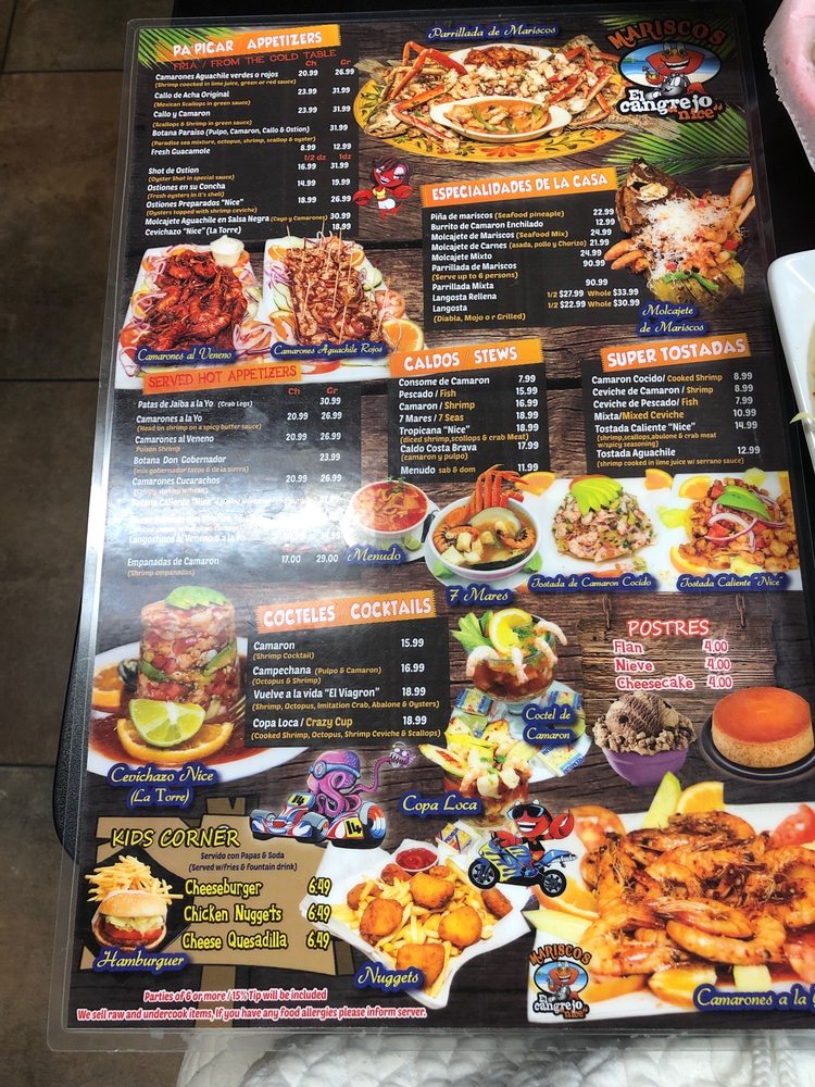 El Cangrejo Nice offers a wide range of Mexican seafood dishes with options for delivery, takeout, and reservations. The menu includes cold appetizers like Camarones Aguachile Verdes and hot appetizers such as Patas De Jaiba. Specialties like Molcajete De Mariscos and Langosta a La Diabla showcase the unique flavors of the restaurant. Customers rave about the spicy and delicious dishes, praising the attentive service and vibrant atmosphere. The variety of options, from seafood to burritos, cater to different tastes and preferences. Despite some noise complaints, the overall experience is enjoyable, especially for those looking to unwind with friends over flavorful mariscos. Give El Cangrejo Nice a try for a memorable dining experience in Santa Ana, California.
